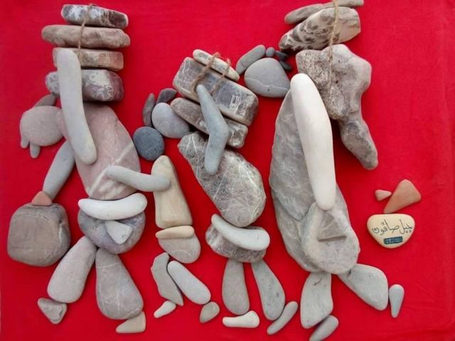 Σύρος γλύπτης αποτυπώνει το δράμα των προσφύγων πάνω στην πέτρα -βότσαλα της θάλασσας σαν εκείνα που στις παραλίες ξεβράζονται οι πνιγμένοι.