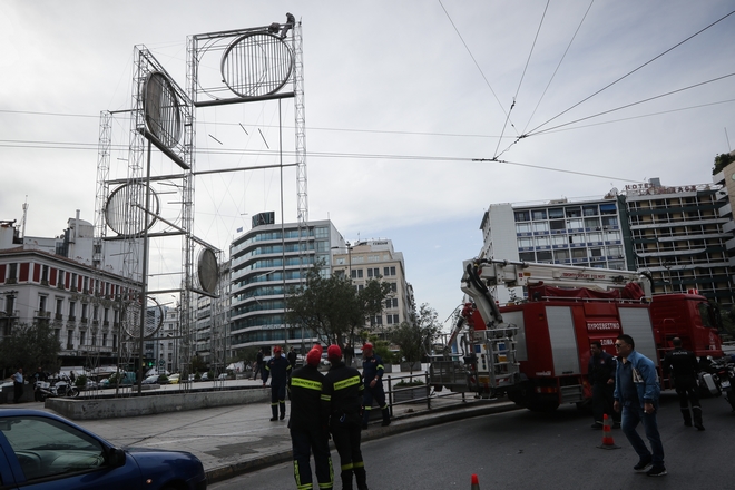 Αίσιο τέλος στην Ομόνοια: Πυροσβέστες κατέβασαν τον άνδρα που απειλούσε να αυτοκτονήσει