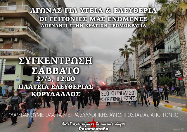 ΣΥΓΚΕΝΤΡΩΣΗ ΣΑΒΒΑΤΟ 27 ΜΑΡΤΗ 12.00 – ΠΛΑΤΕΙΑ ΕΛΕΥΘΕΡΙΑΣ ΚΟΡΥΔΑΛΛΟΣ