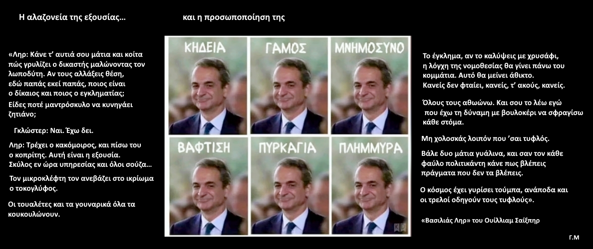 Κλείνω αυτό το κεφάλαιο με ένα μικρό απόσπασμα του Ουίλιαμ Σαίξπηρ απο το «Βασιλιάς Ληρ» που ταιριάζει απόλυτα με την διαφθορά και την αλαζονεία αυτής της κυβέρνησης.