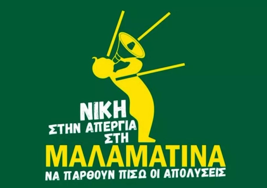 Συνάδελφοι,ευχόμαστε καλή δύναμη και καλή συνέχεια στον αγώνα σας. Ενώνουμε μαζί σας τη φωνή μας απαιτώντας ανάκληση των απολύσεων, υπογραφή ΣΣΕ στην «Μαλαματίνα», να γίνονται σεβαστά τα εργατικά δικαιώματα.Ο αγώνας σας είναι αγώνας όλων των εργαζόμενων, η Νίκη σας θα είναι Νίκη για όλους τους εργαζόμενους.