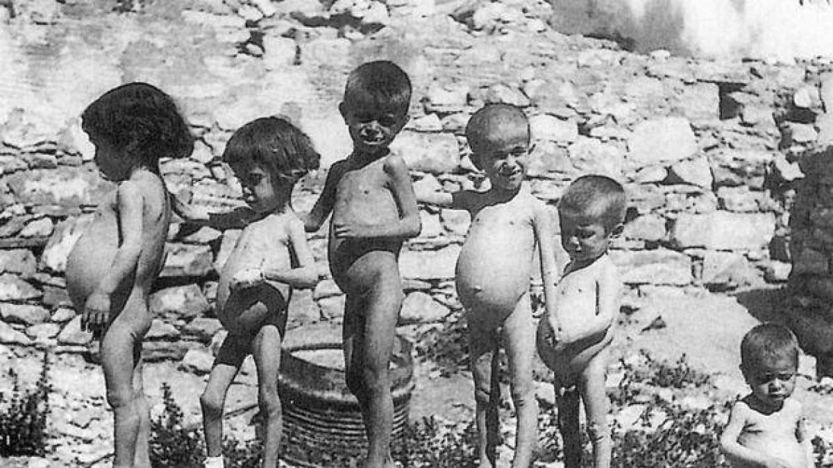 Στην φώτο παιδιά της Σύρου με τυμπανισμό από ασιτία από τον θανατηφόρο λιμό που προκάλεσαν οι Ιταλοί φασίστες στο νησί.