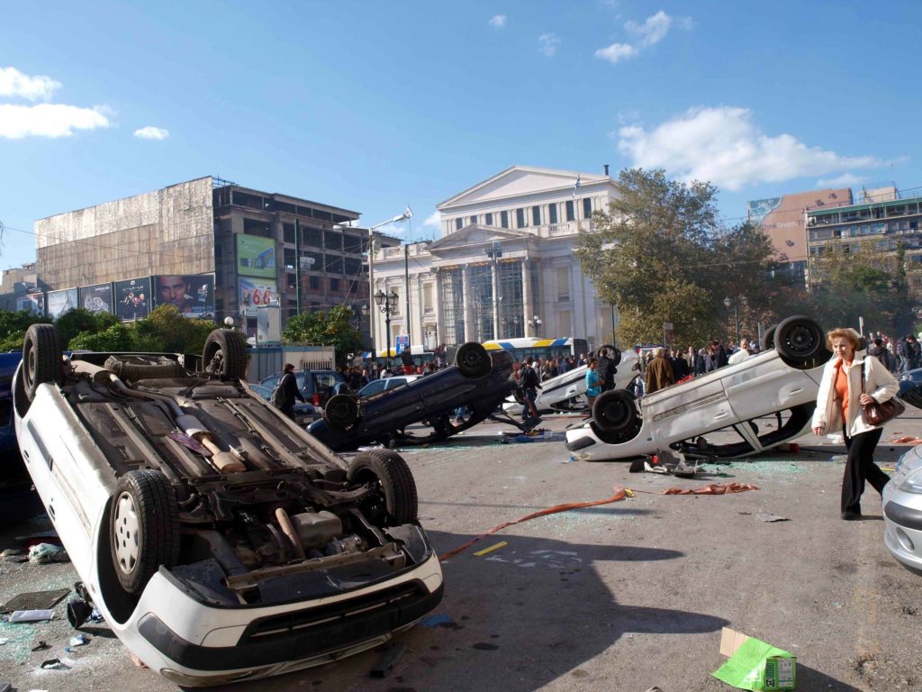 Το κέντρο της Αθήνας δονείται από την ιαχή «δολοφόνοι» και καταγράφονται οι πρώτες φθορές σε τράπεζες στην Πατησίων και τη Σόλωνος.