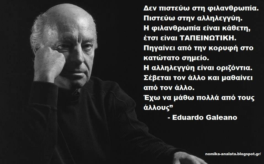 Δεκαέξι χρόνια μετά ο Γκαλεάνο δεν βρίσκεται πια στη ζωή, αλλά το κείμενό του είναι πιο επίκαιρο από ποτέ. Τίποτα σχεδόν δεν έχει αλλάξει, εκτός από τον πολλαπλάσιο αριθμό των θυμάτων και το απύθμενο μέγεθος της καταστροφής.